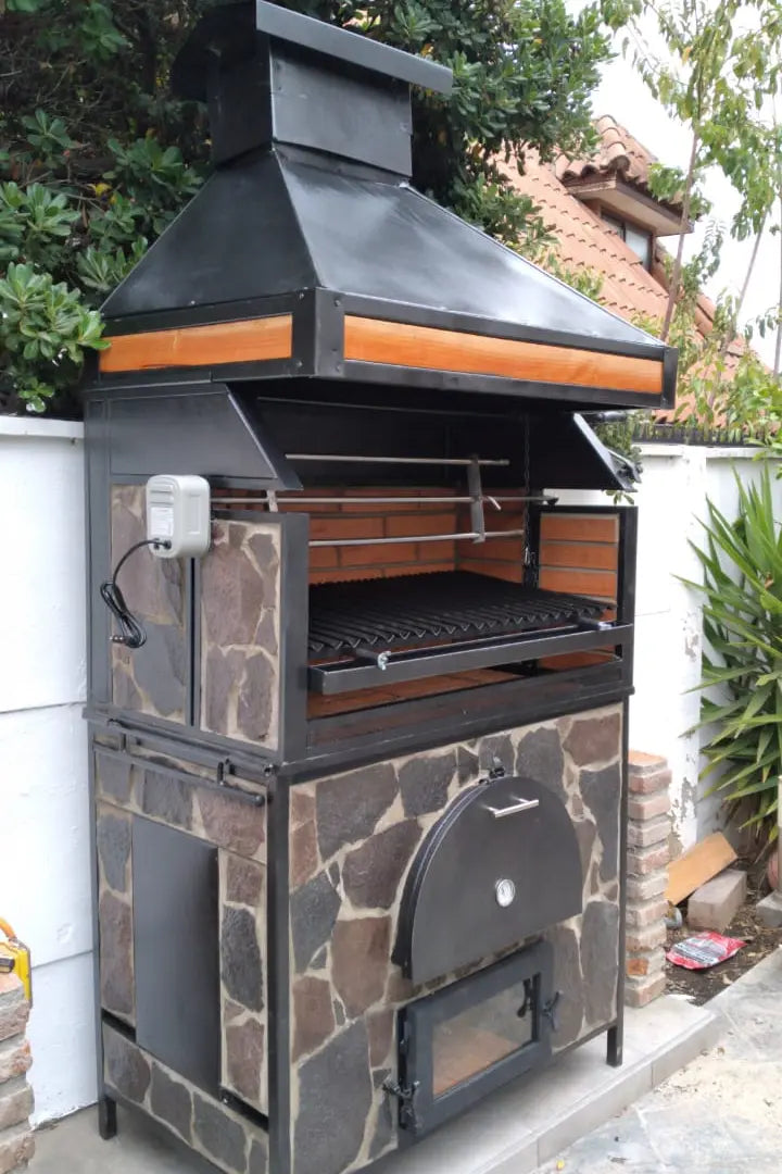 ¡El más vendido porque cabe en todas partes! tiene todo lo necesario, motor para que la carne gire solita! Horno con dos bandejas enlozadas lo que ayuda a que sea mas fácil limpiar y que no se pegue, también tiene bota jugo para grasas, incorpora los cañones, noo listo llegar y ponerle su carne favorita!
