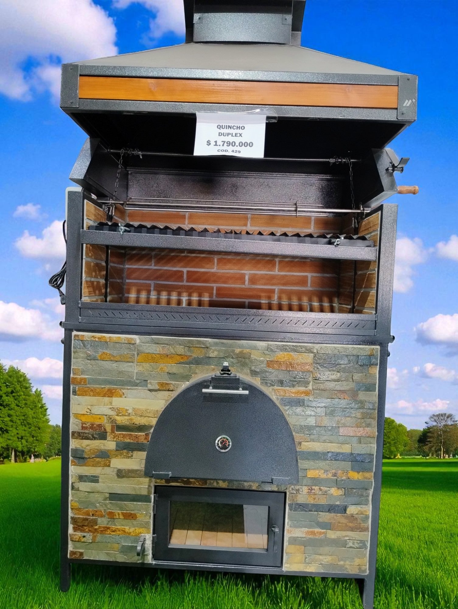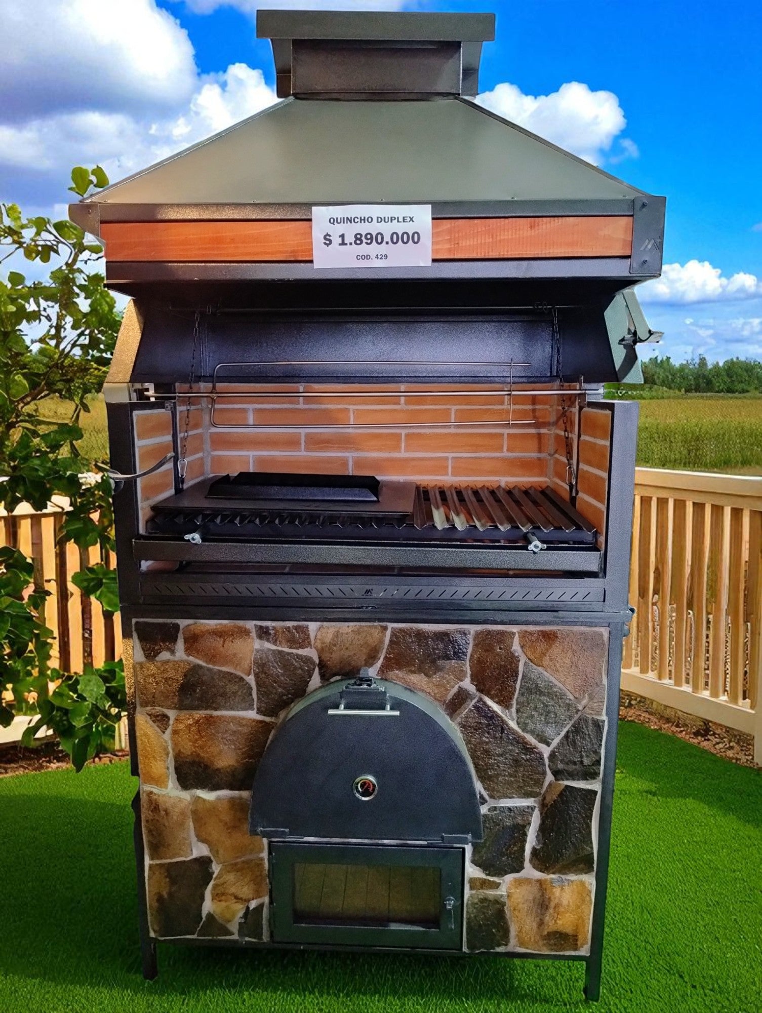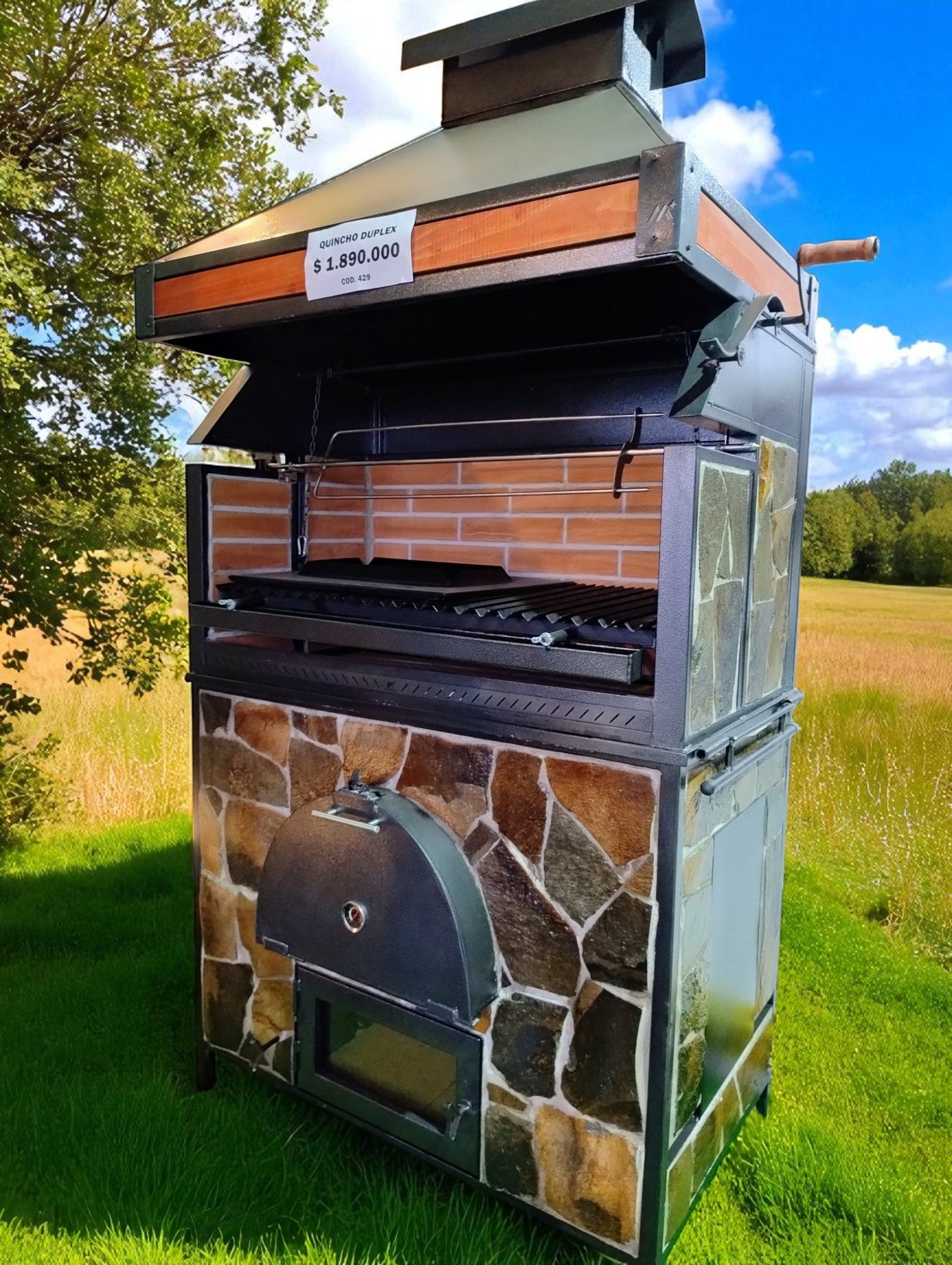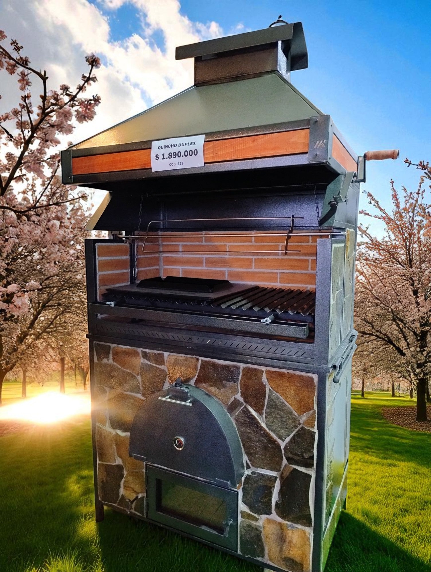 La parrilla desmontable enlozada, con ángulo en "V" y botajugo recolector de grasas asegura asados más saludables y sin humo excesivo. Lo mejor: todo esto está contenido en un diseño compacto de solo 110 cm, ideal para patios pequeños o terrazas sin sacrificar funcionalidad.